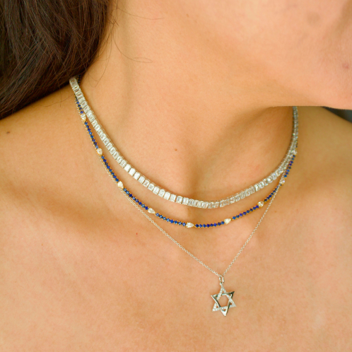 14K White Gold Blue Sapphire & Diamond Eternity Band