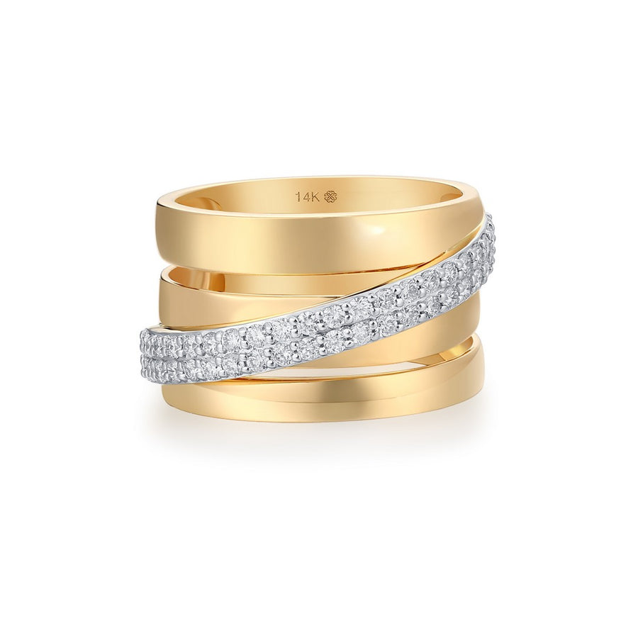 14K Yellow Gold 0.10 CTW Diamond Rope Crossover Ring