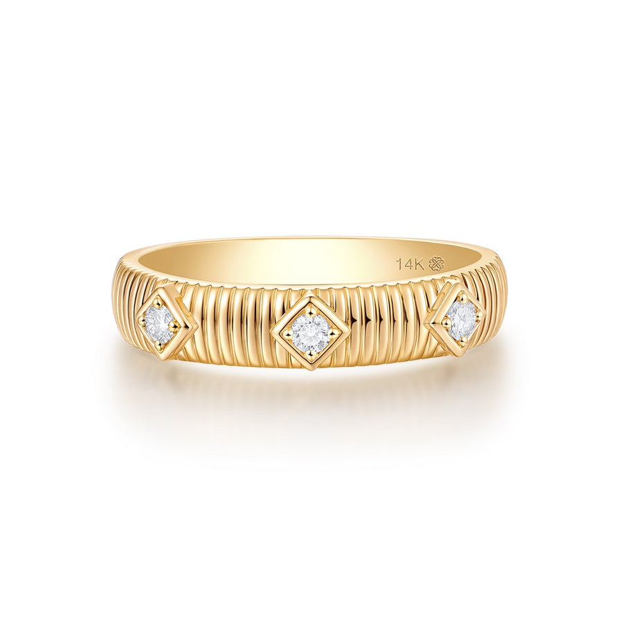 14K Yellow Gold 0.10 CTW Diamond Ribbed Band Ring