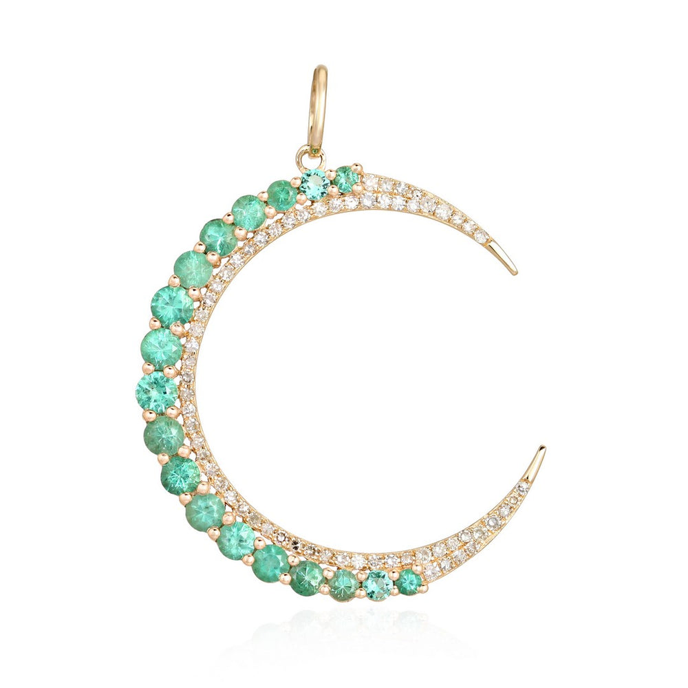 14K Yellow Gold Blue Sapphire & Diamond Crescent Moon Pendant