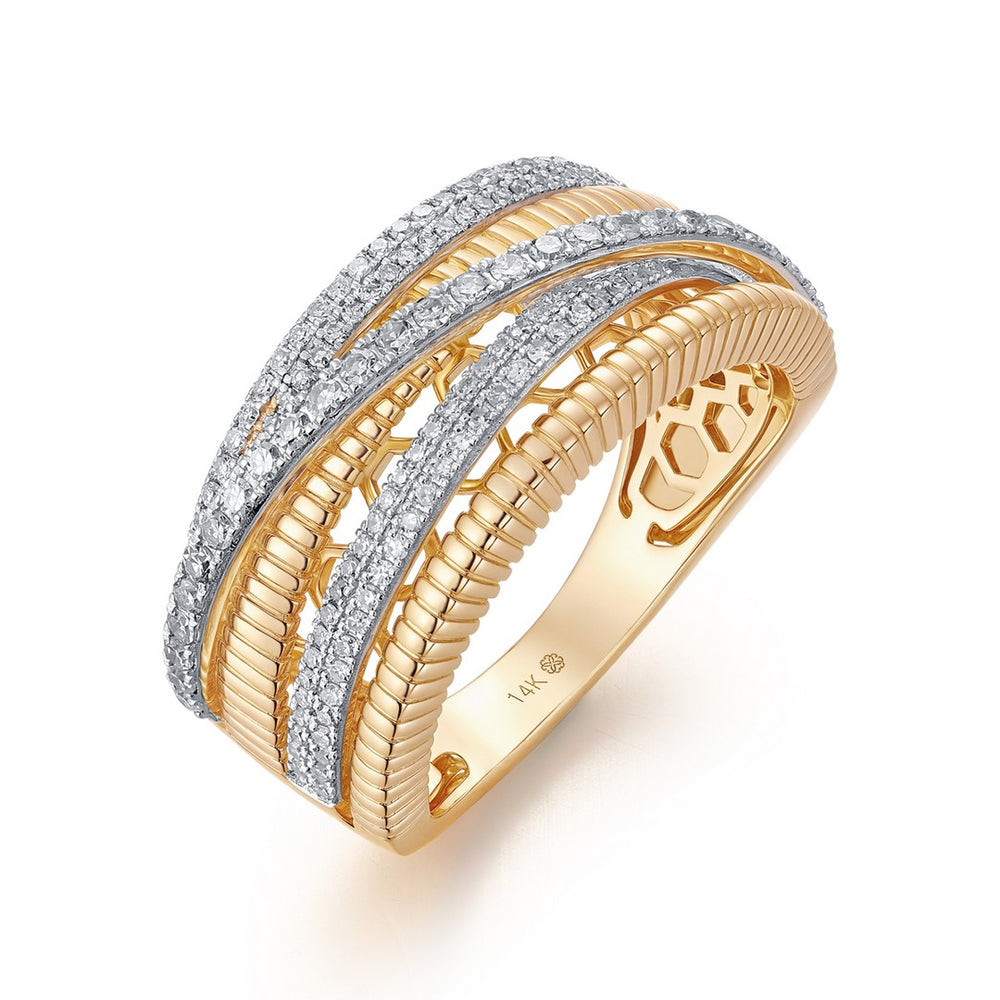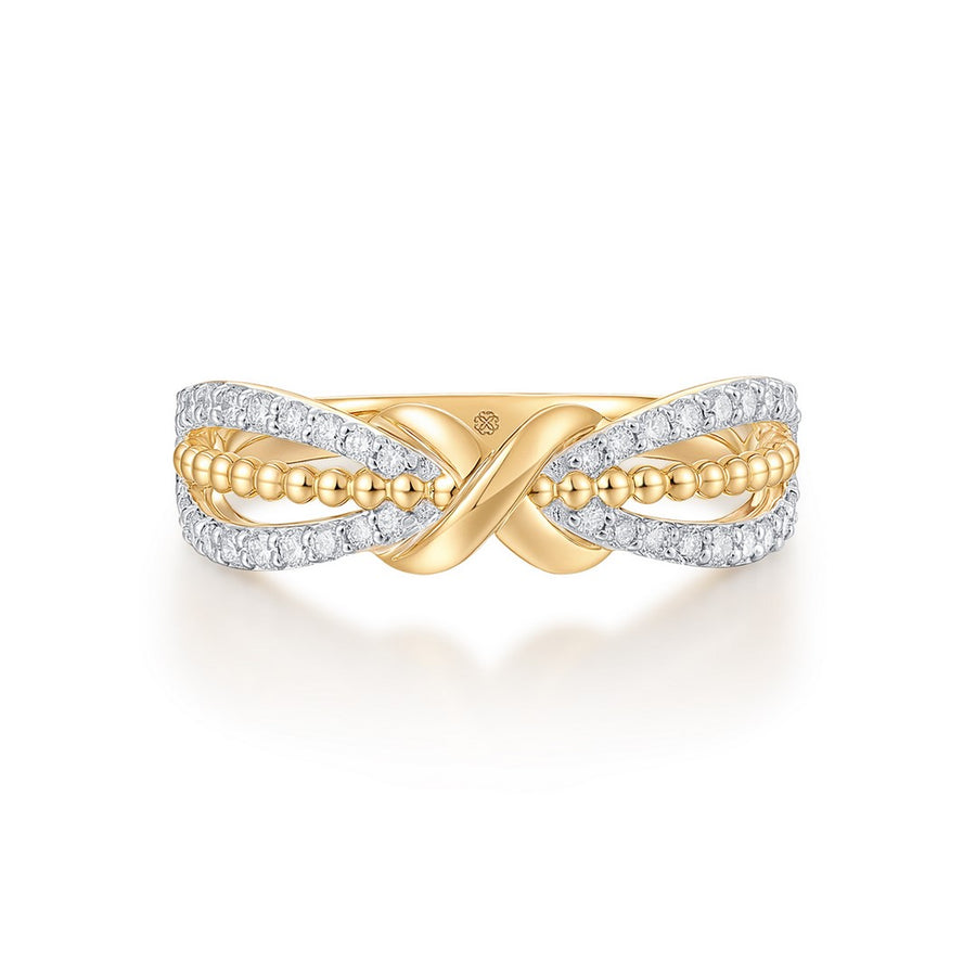 14K Yellow Gold 0.30 CTW Diamond Beaded Crossover Ring