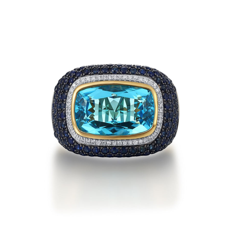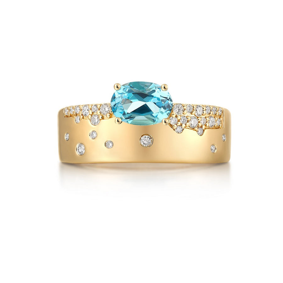 14K Yellow Gold 7.75 CT Blue Topaz & 2.35 CTW Sapphire Diamond Ring