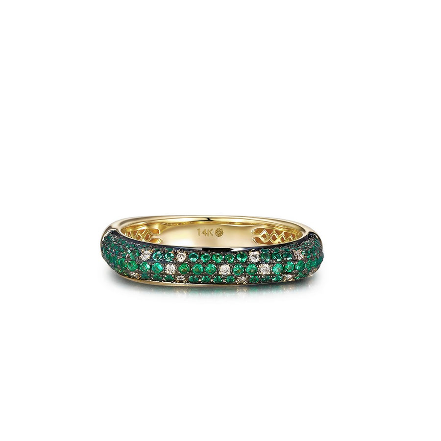 14K Yellow Gold 0.40 CTW Emerald & Diamond Pavé Band Ring