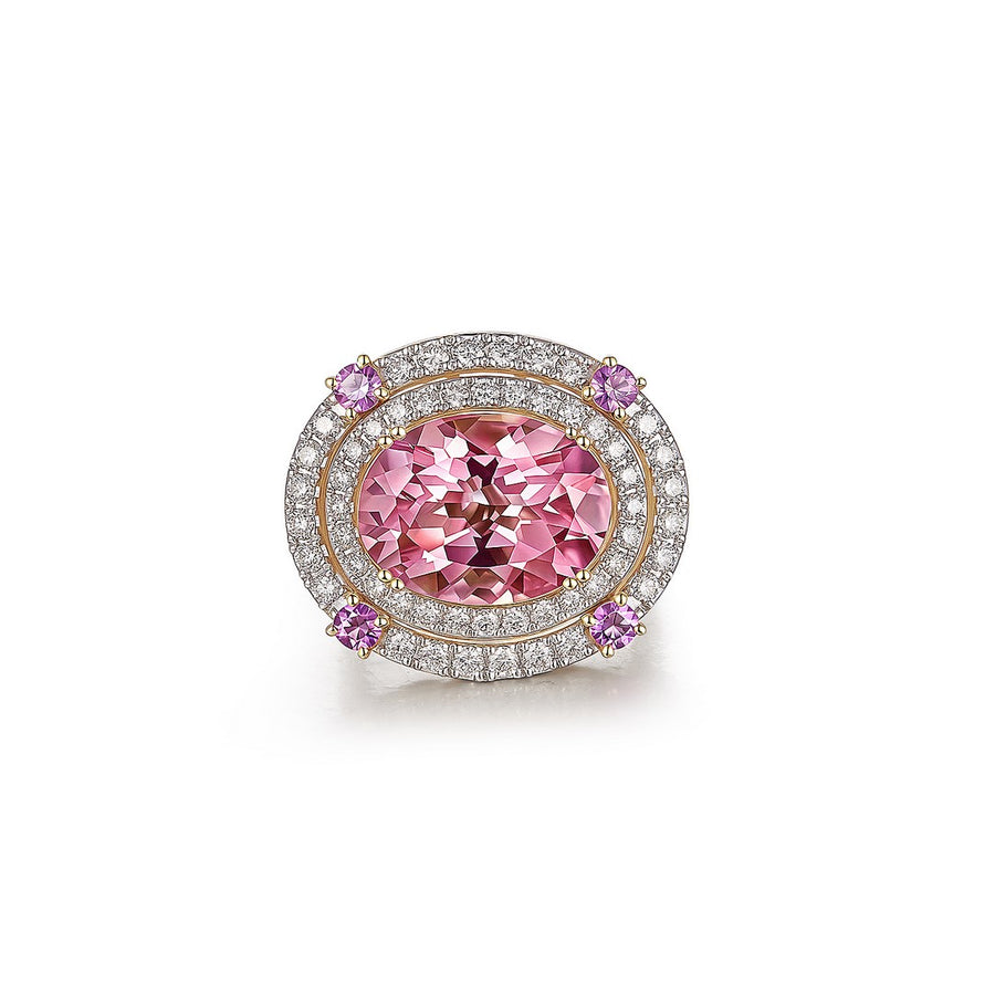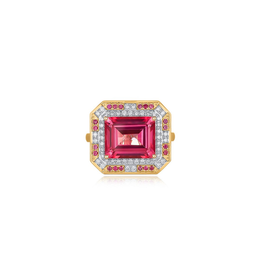 14K Yellow Gold 5.35 CT Pink Tourmaline & 0.40 CTW Pink Sapphire Diamond Ring