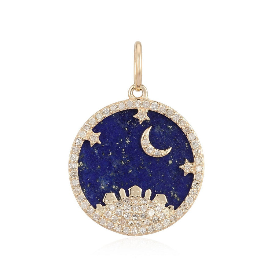 Night Sky Lapis and Diamond Medallion Pendant in 14K Gold