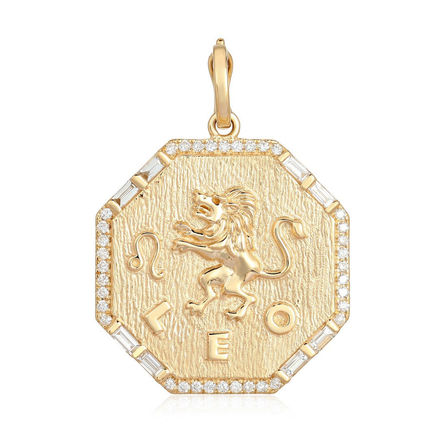 14K Yellow Gold Leo Zodiac Lion Pendant with Diamond Halo