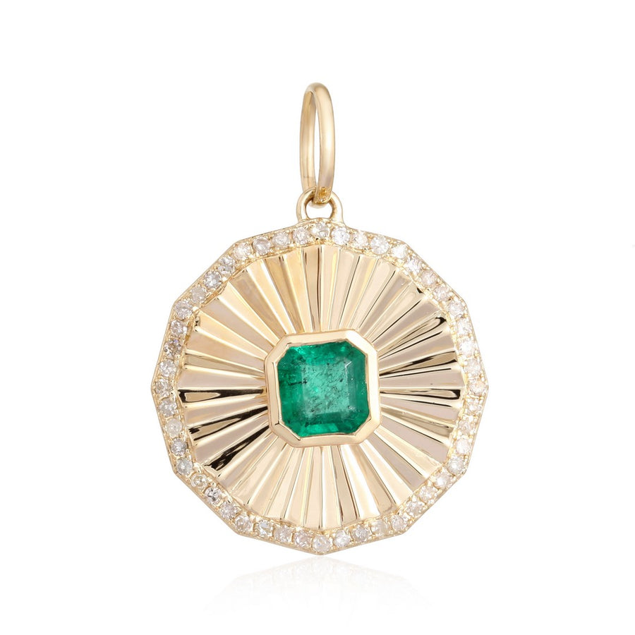 14K Yellow Gold Emerald & Diamond Sunburst Pendant Charm