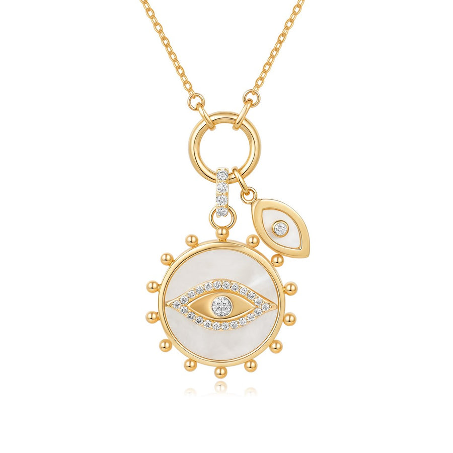 14K Yellow Gold Mother-of-Pearl & Diamond Double Drop Pendant Necklace
