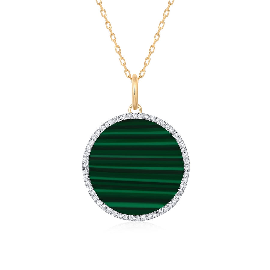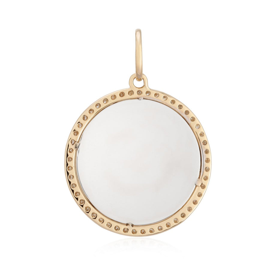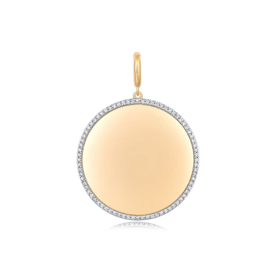 14K Yellow Gold Diamond Halo Disc Pendant Necklace