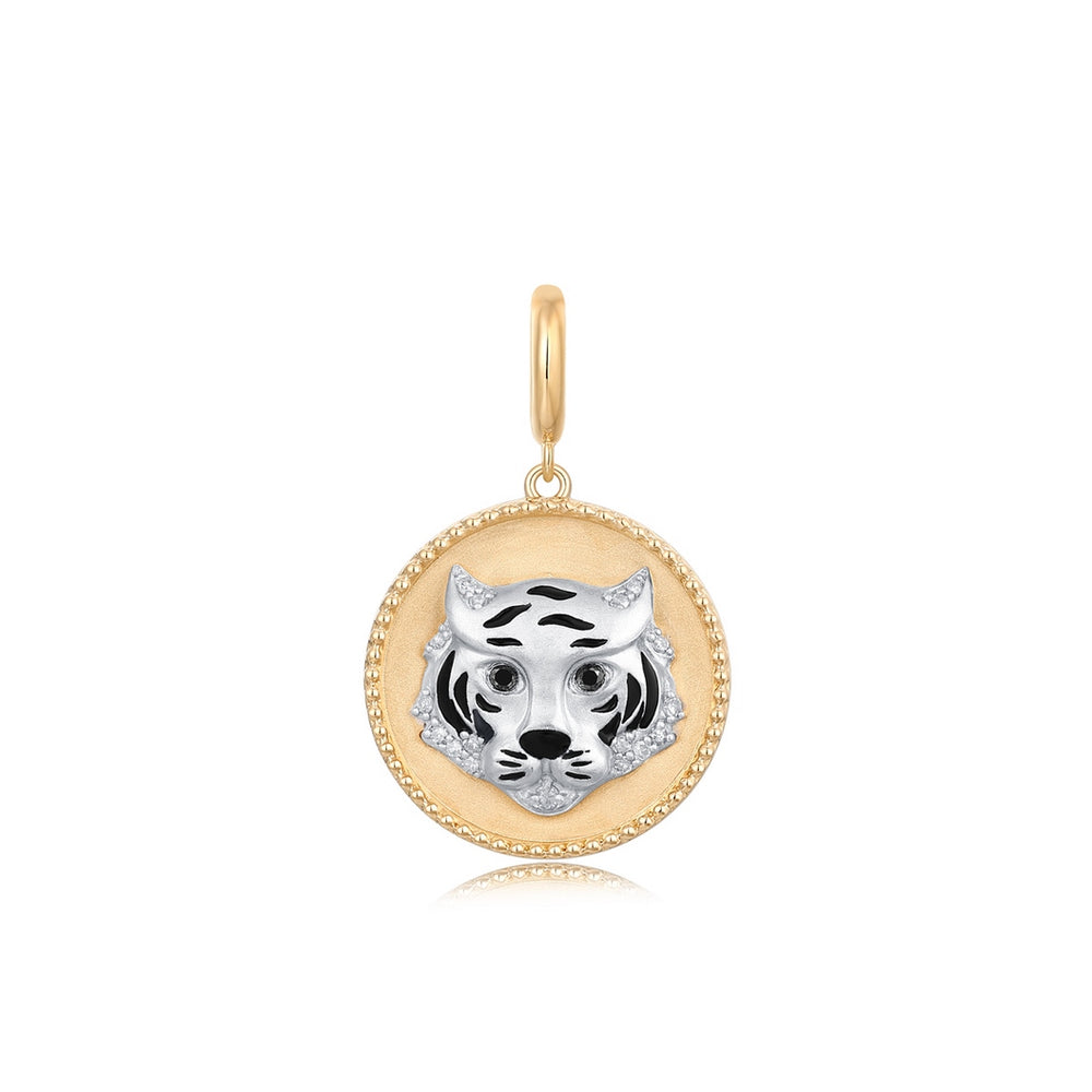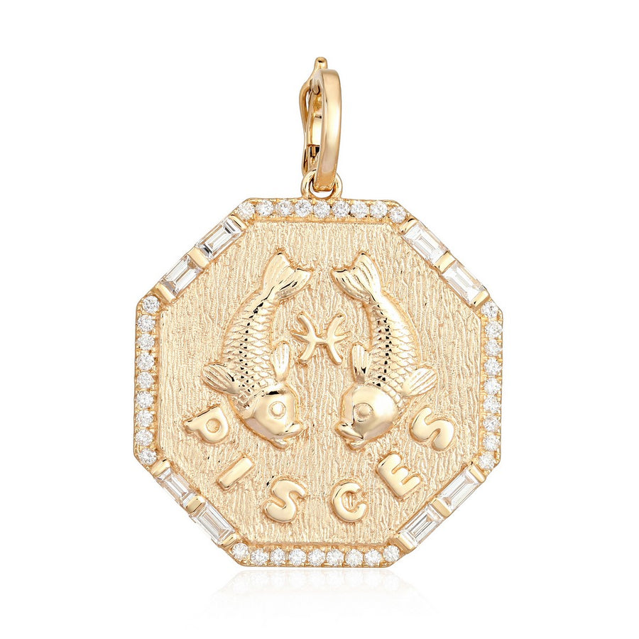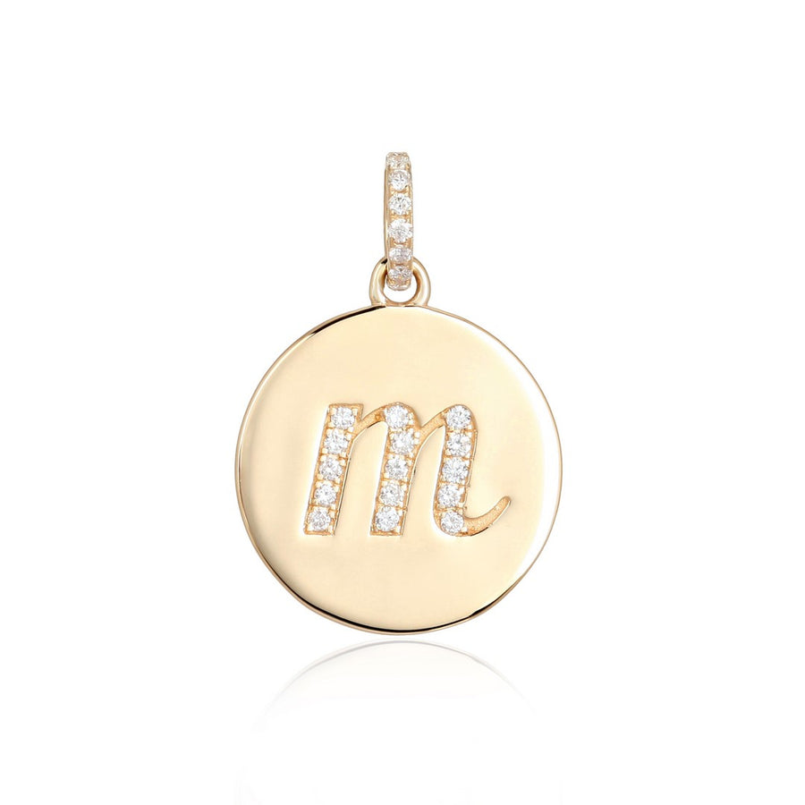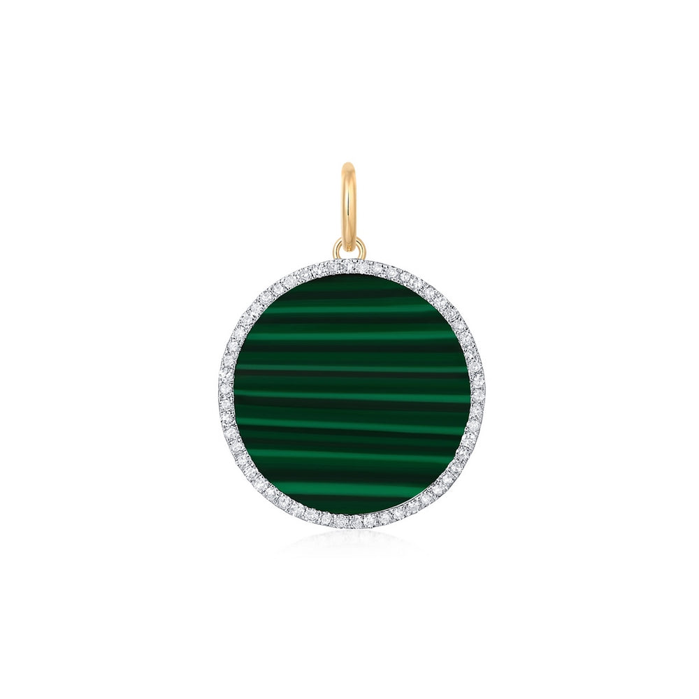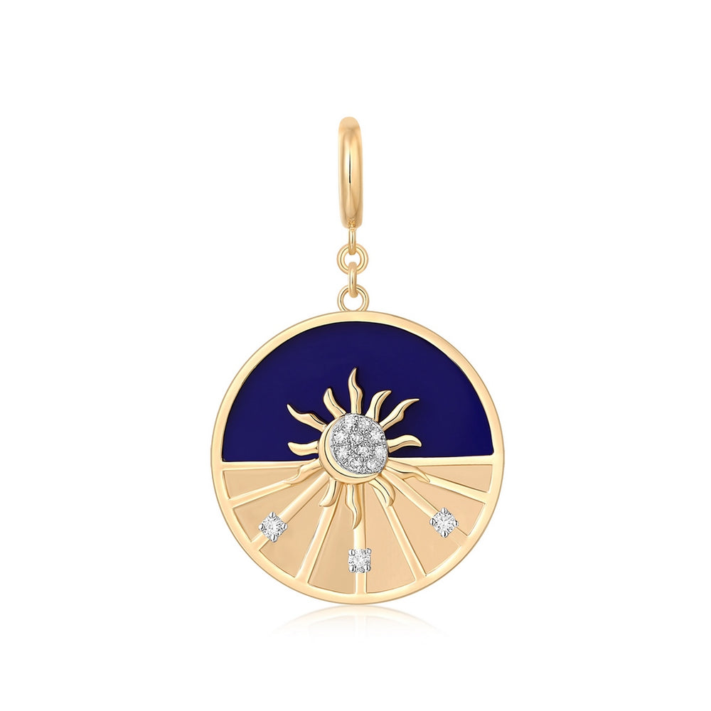 14K Yellow Gold Diamond Bar & Round Medallion Drop Pendant Charm