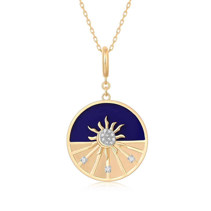 14K Yellow Gold Diamond Crescent Moon Pendant Necklace