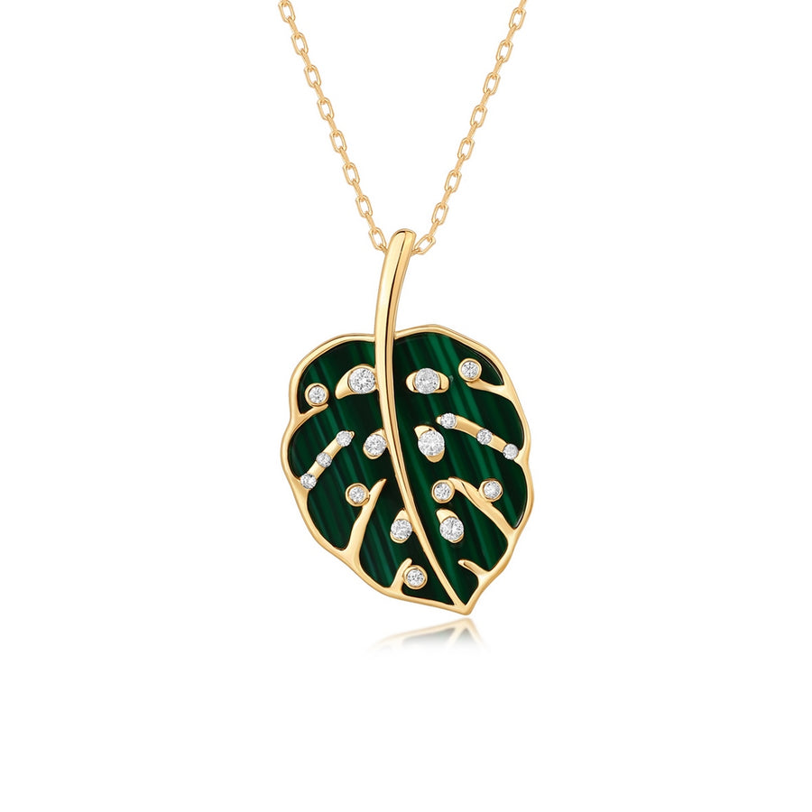 14K Yellow Gold Mother of Pearl, Tsavorite & Diamond Pendant - 9.20 CT MOP