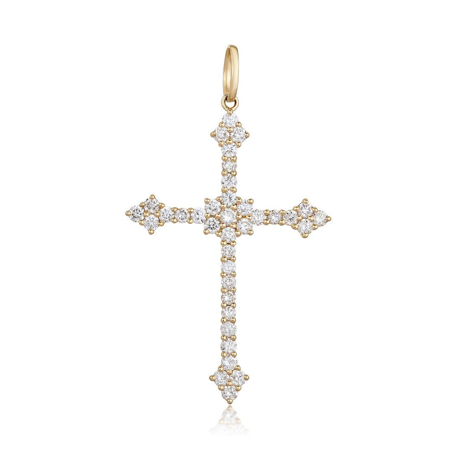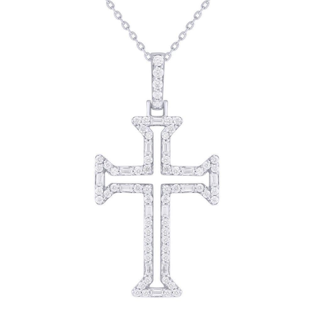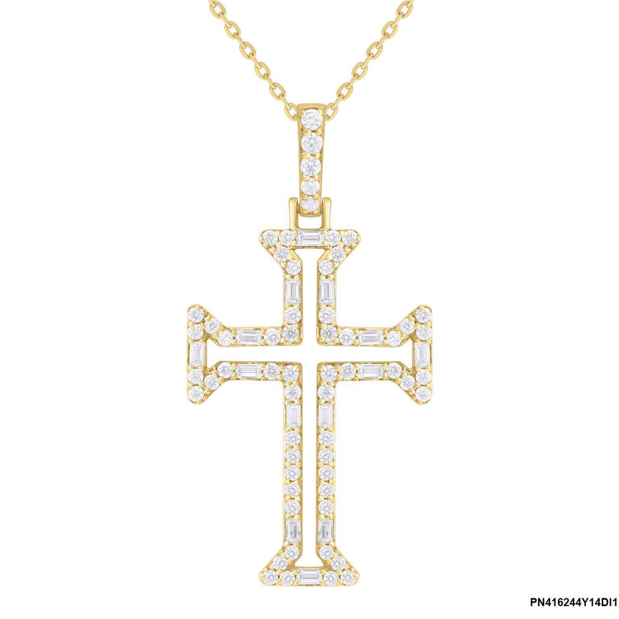 14K Yellow Gold Baguette & Round Diamond Cross Pendant Charm
