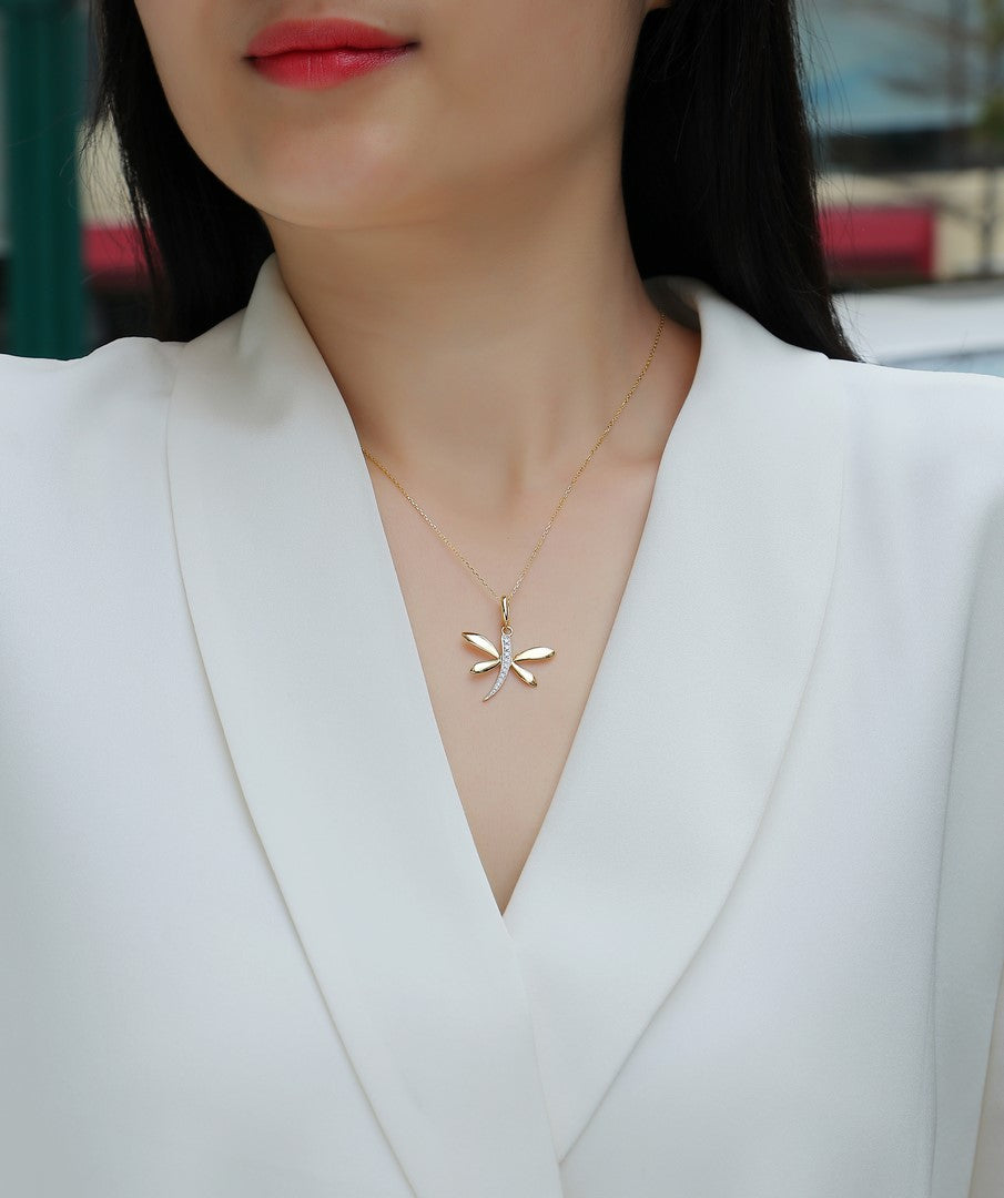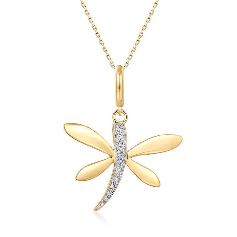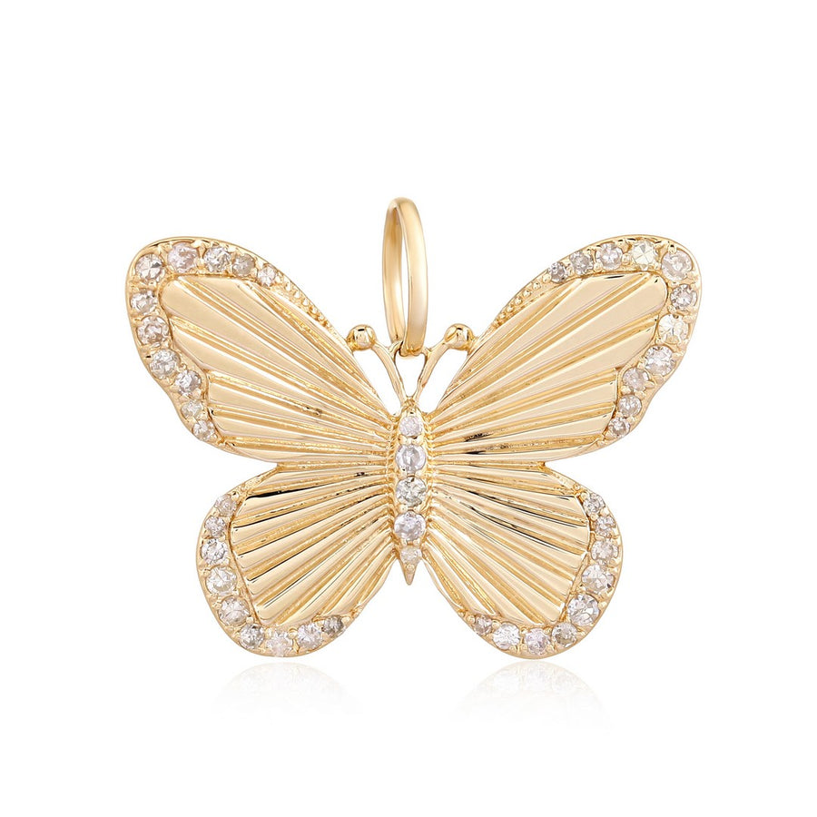 14K Yellow Gold Diamond Butterfly Pendant Charm