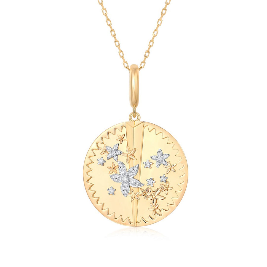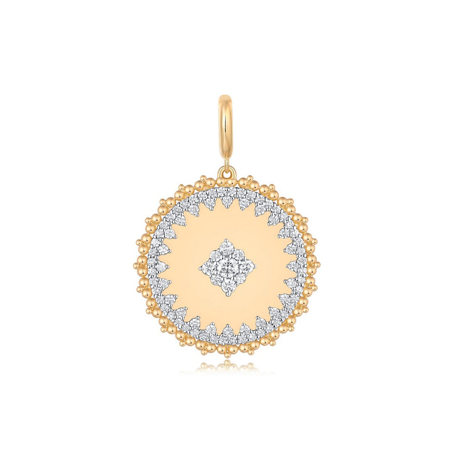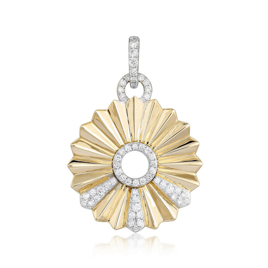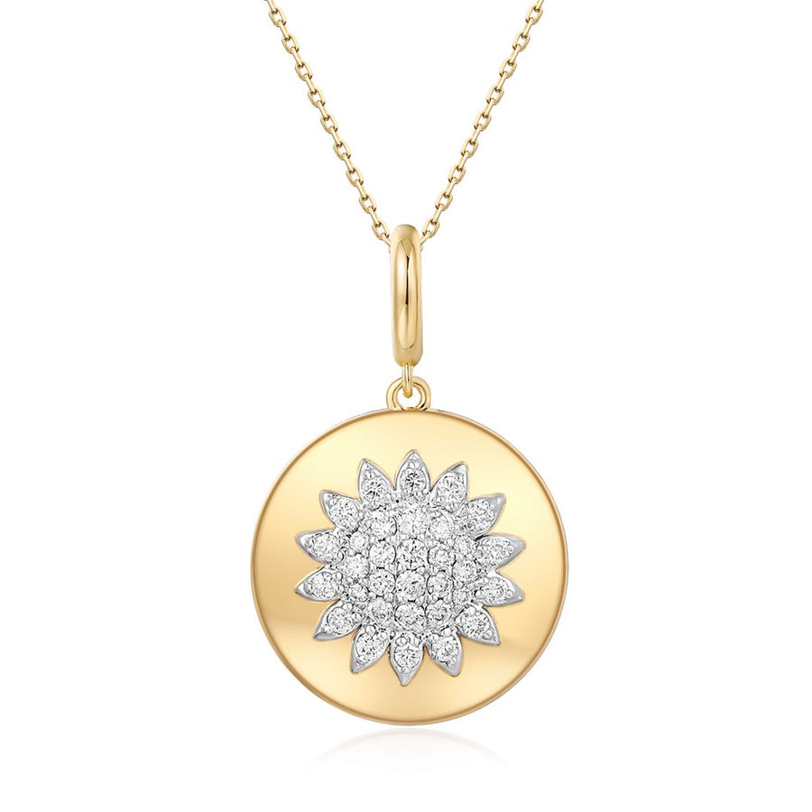 14K Yellow Gold Diamond Sunburst Medallion Pendant Charm