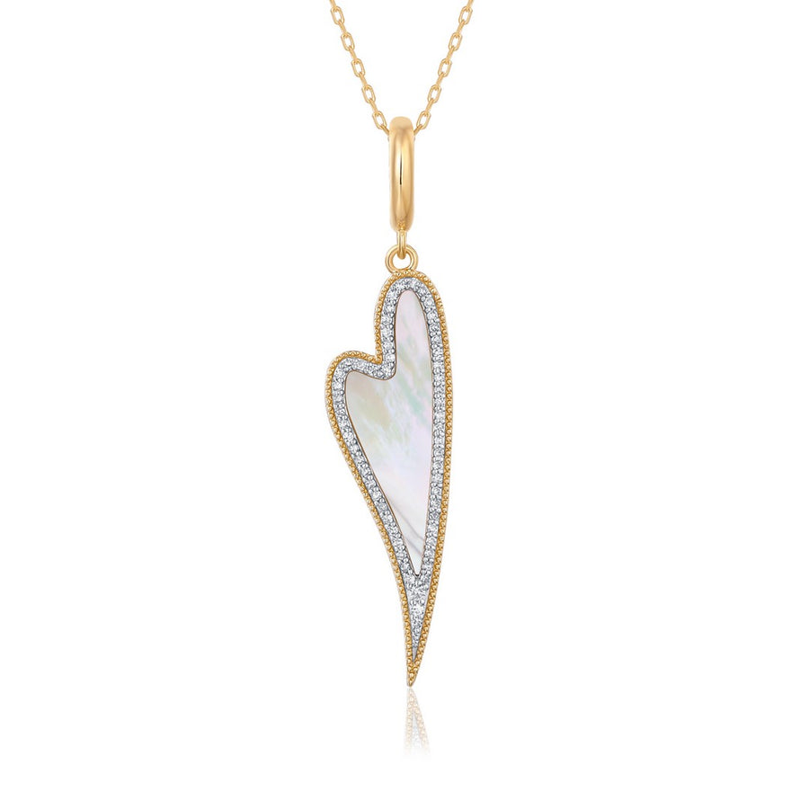 14K Yellow Gold Mother-of-Pearl & Diamond Pavé Heart Pendant Necklace