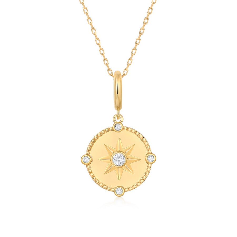 14K Yellow Gold Starburst Diamond Medallion Pendant Necklace