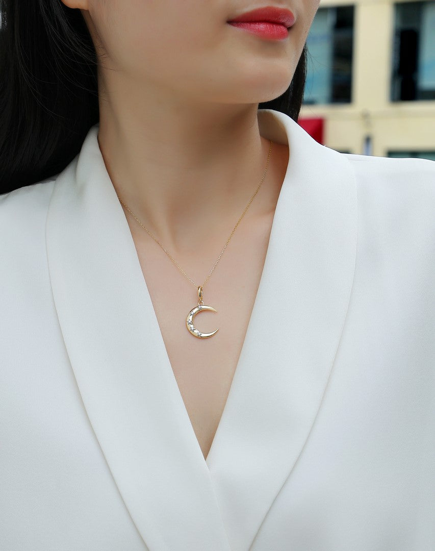 14K Yellow Gold Diamond Crescent Moon Pendant Charm