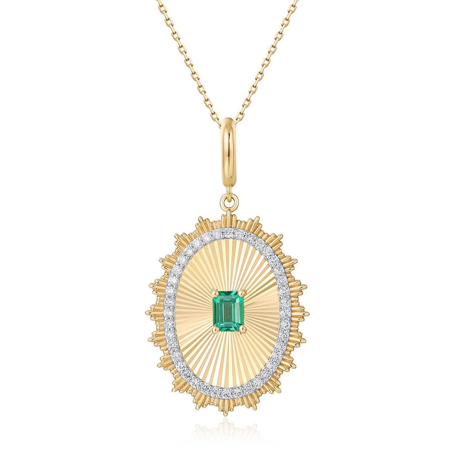 14K Yellow Gold Emerald & Diamond Pendant - 0.45 CT Emerald