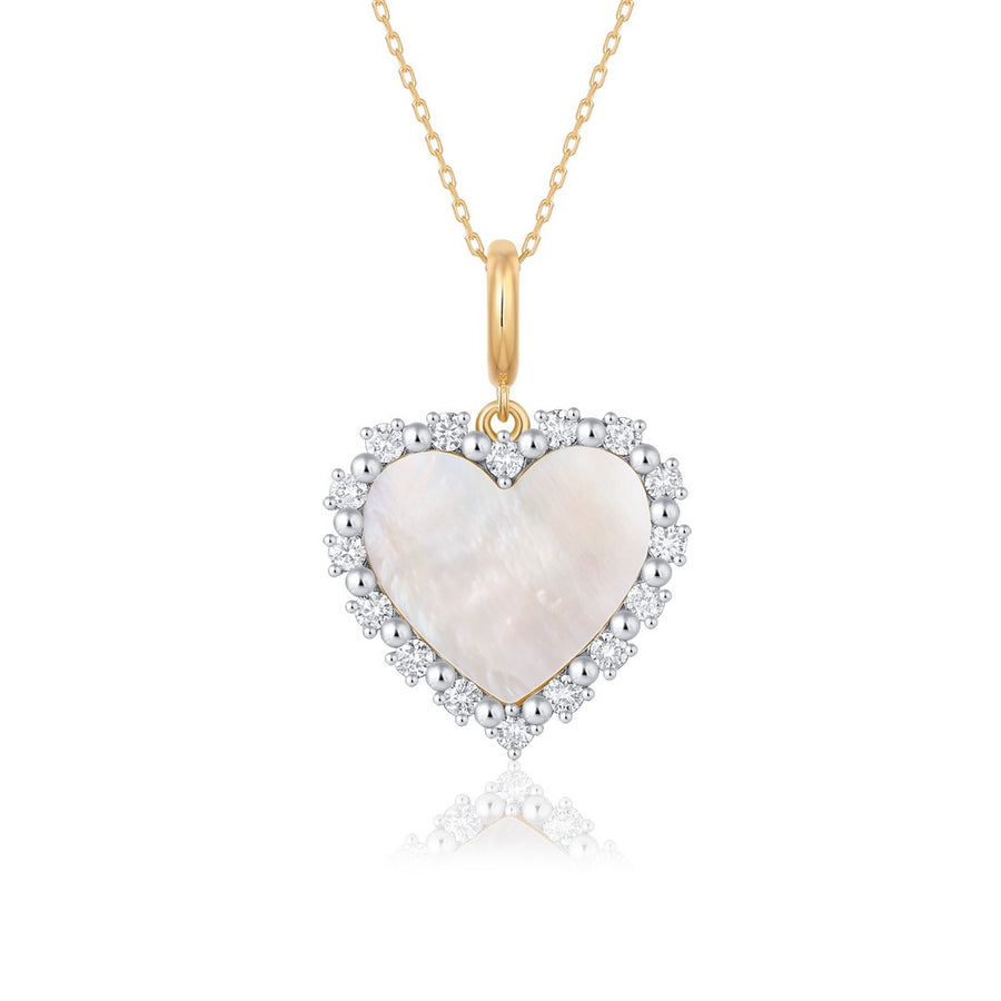 14K Yellow Gold Mother-of-Pearl Heart Pendant with Diamond Halo
