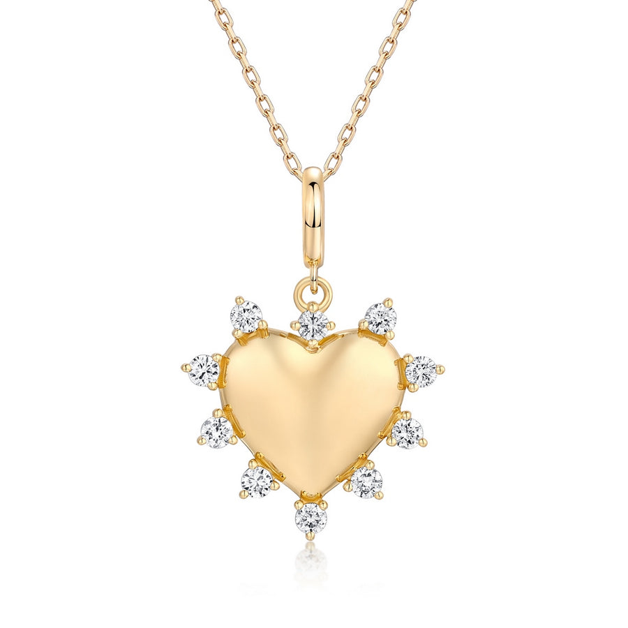 14K Yellow Gold Diamond Starburst Heart Pendant Necklace