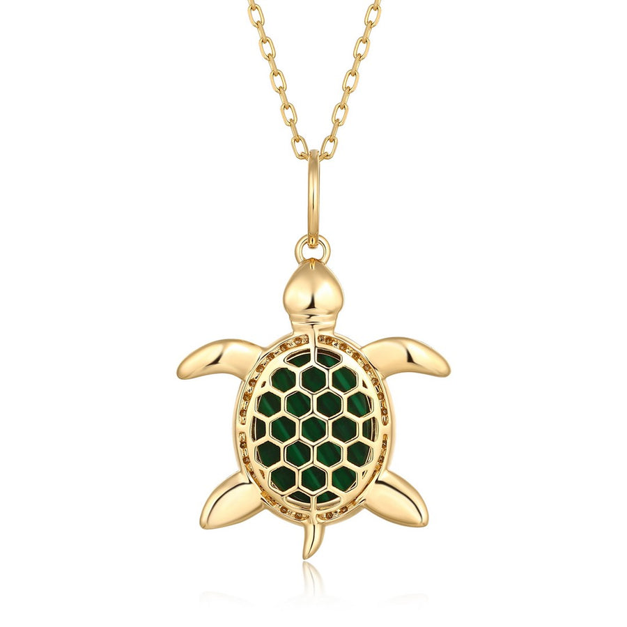 Malachite Honeycomb Turtle Diamond Pendant in 14K Gold