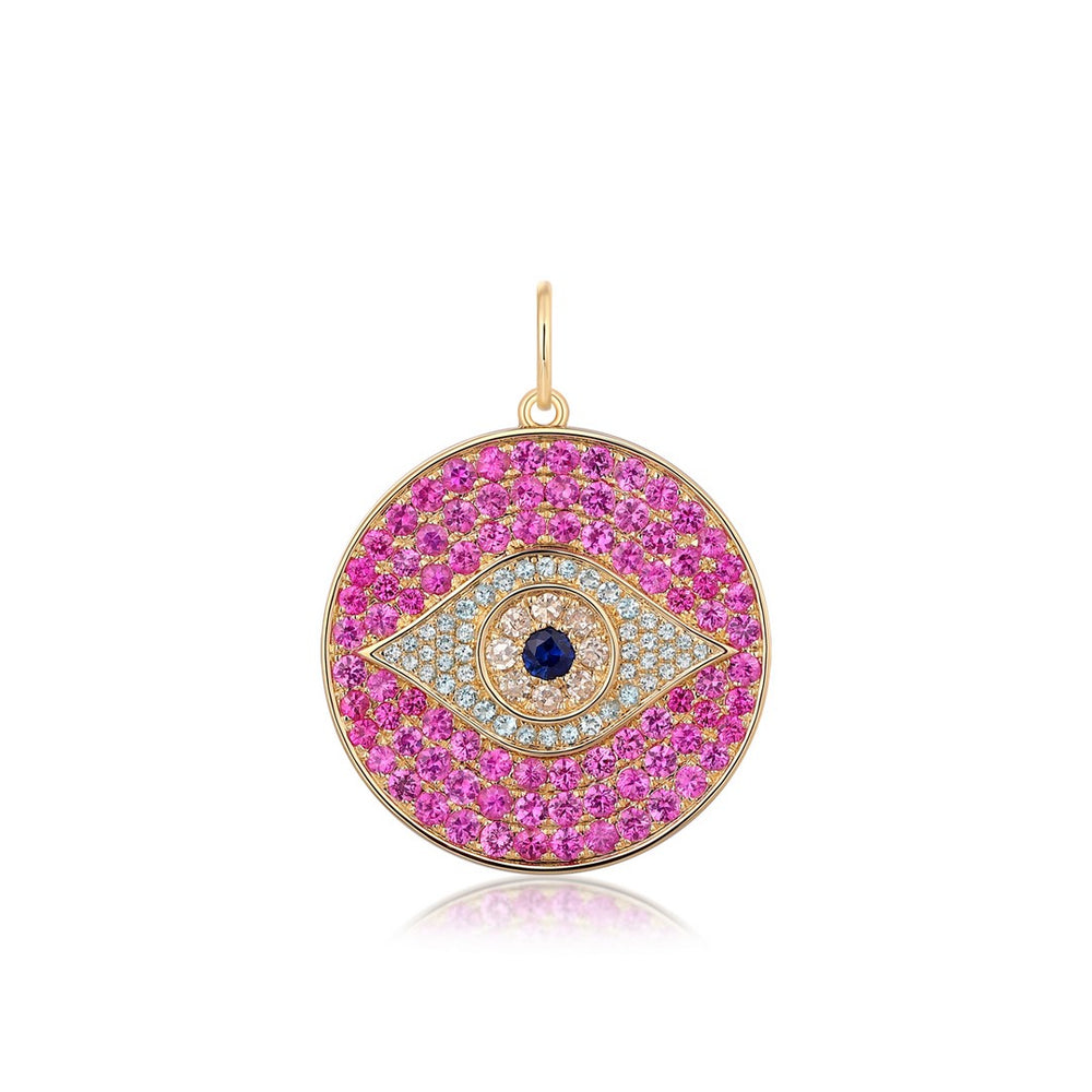 Evil Eye Sapphire and Diamond Medallion Pendant in 14K Gold