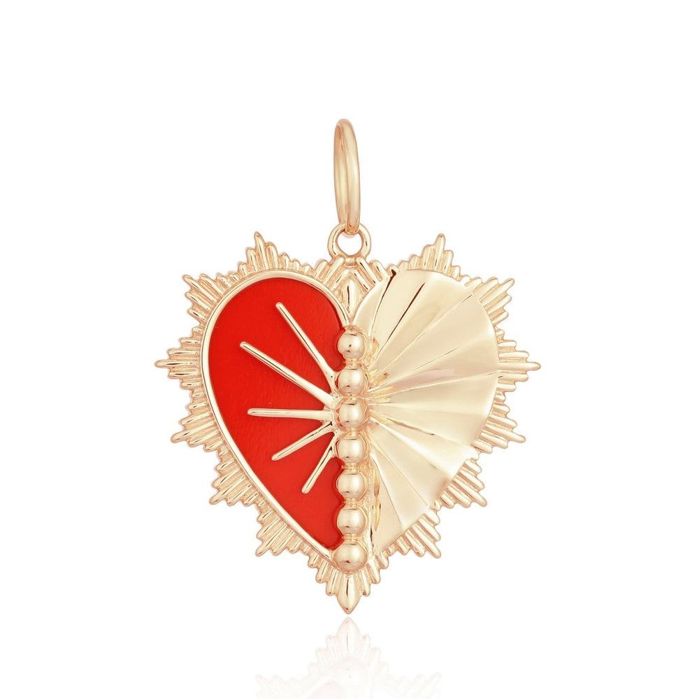 14K Yellow Gold Diamond Sunburst Heart Pendant Necklace