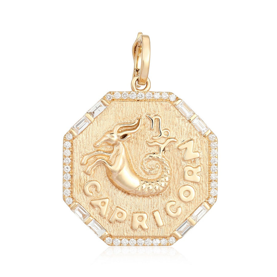 Capricorn Zodiac Diamond Medallion Pendant in 14K Yellow Gold