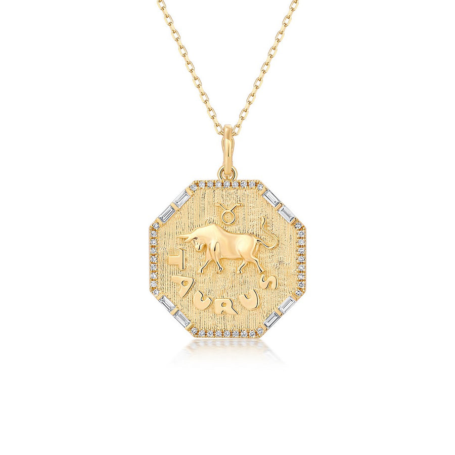14K Yellow Gold Taurus Zodiac Pendant Necklace with Diamond Halo
