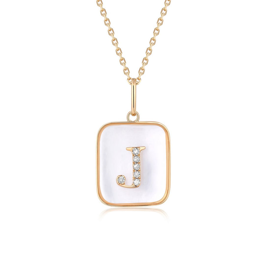 Mother of Pearl & Diamond "E" Initial Pendant in 14K Yellow Gold
