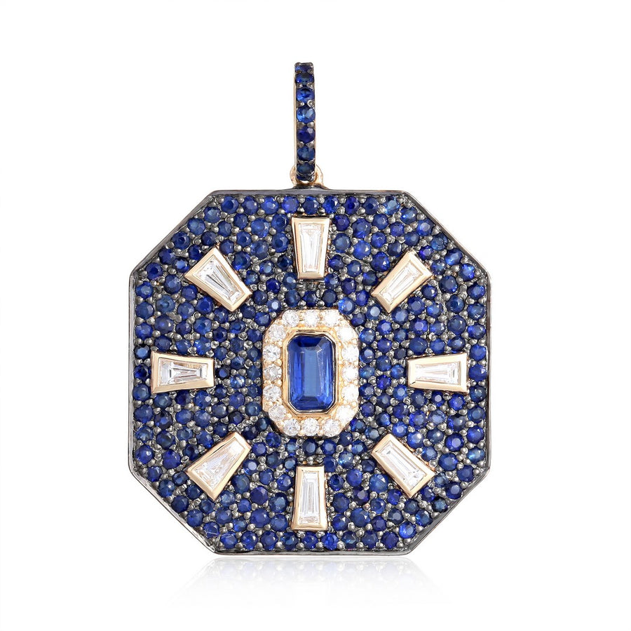 Blue Sapphire & Diamond Octagon Pendant in 14K Yellow Gold