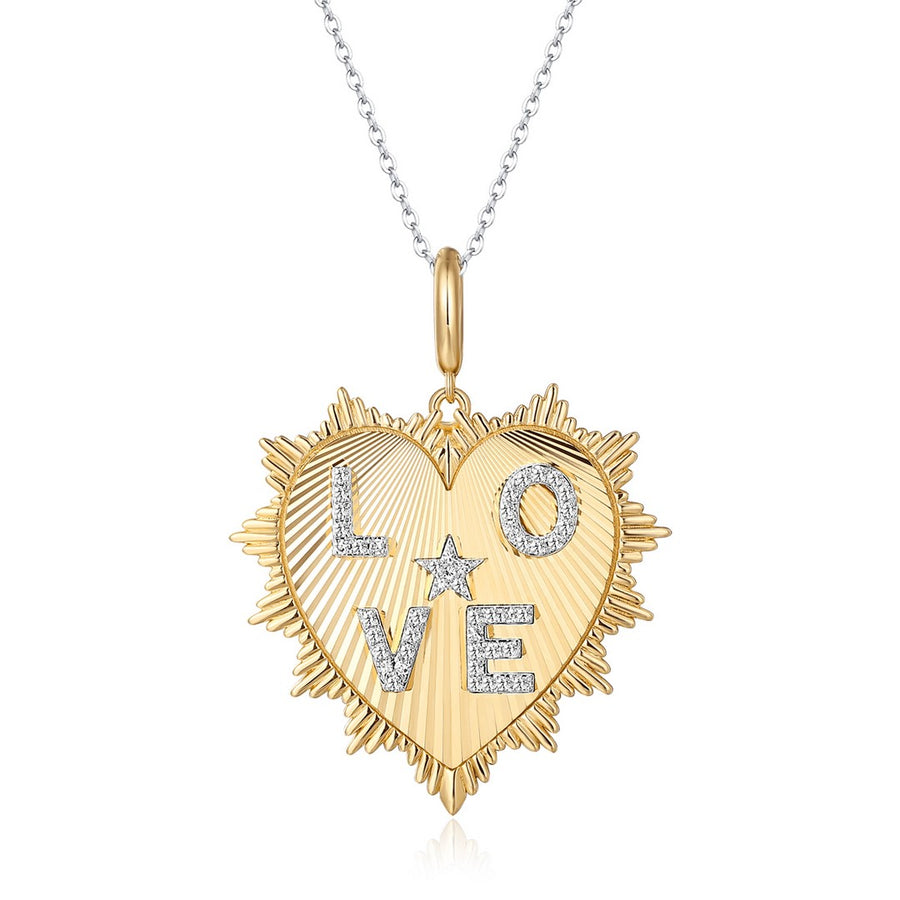 Diamond Love Sunburst Pendant in 14K Yellow Gold