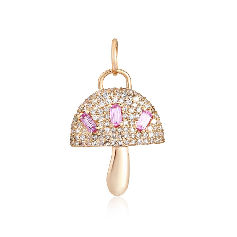 Diamond and Emerald Mushroom Pendant in 14K Gold