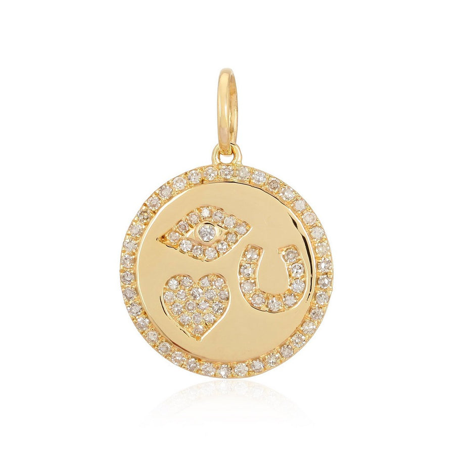 Lucky Charm Diamond Medallion Pendant in 14K Yellow Gold