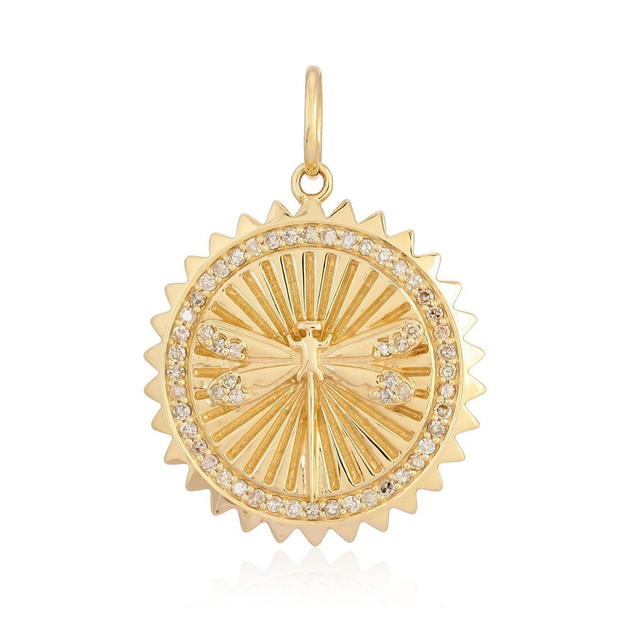 14K Yellow Gold Diamond Sunburst Medallion Pendant